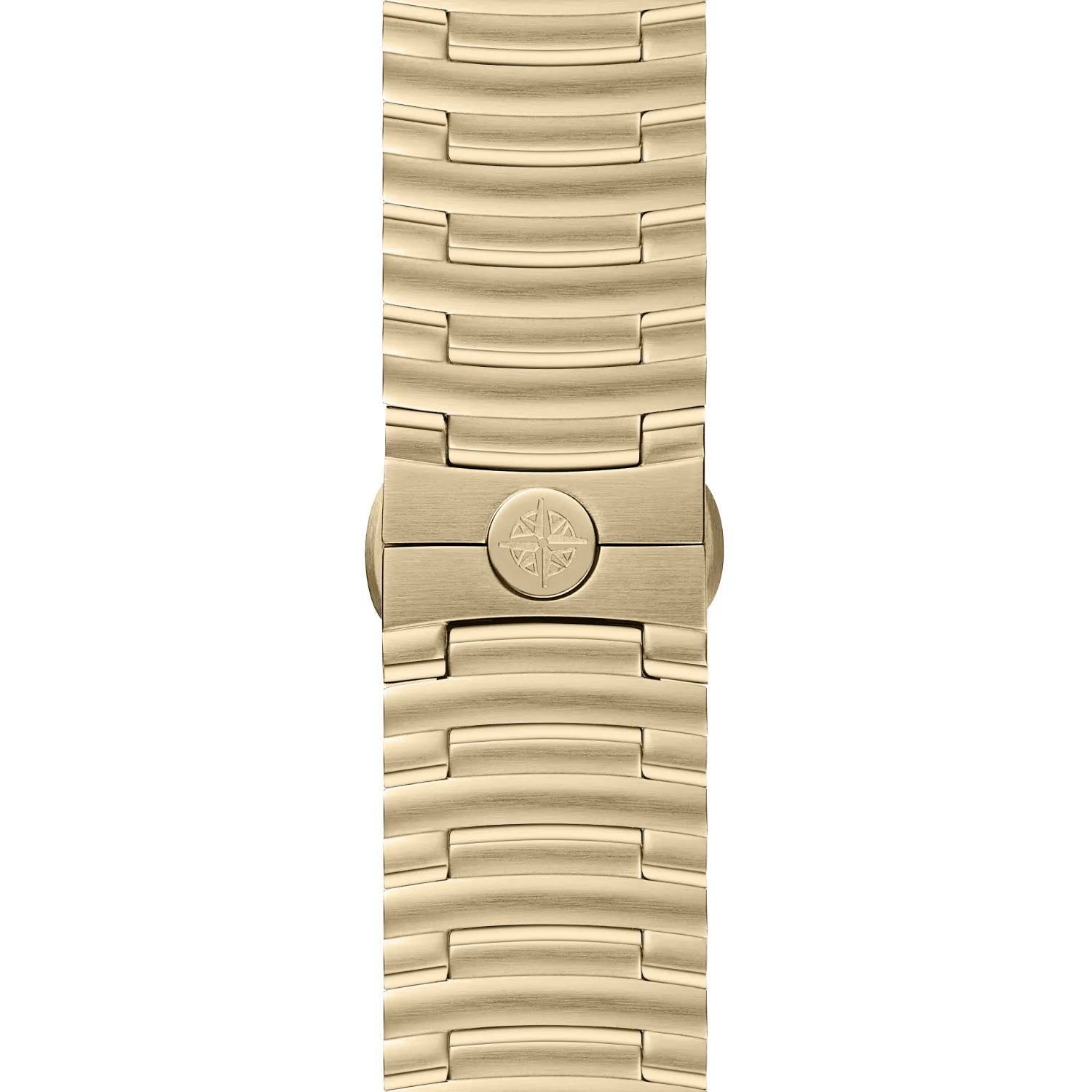 The Terra Nova bracelet is crafted from polished and brushed cupro-aluminium bronze – a high-performance alloy prized for its strength and its ability to develop a rich, even patina over time.